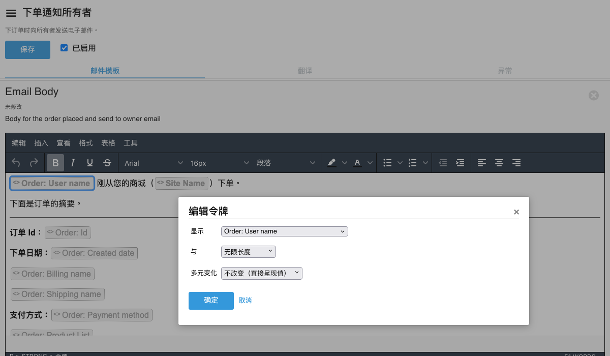 邮件、短信使用上下文令牌编辑,所见即所得。