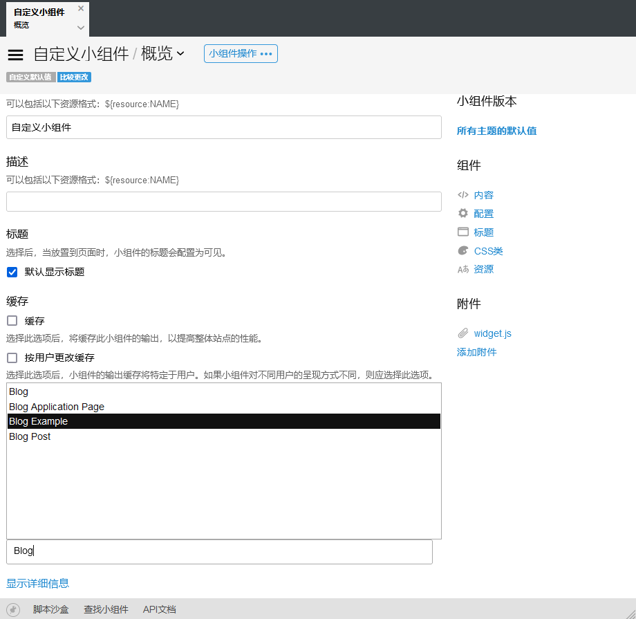 在站点中布置页面时,任何有“Blog Example”上下文的小组件将只能添加到博客的页面。