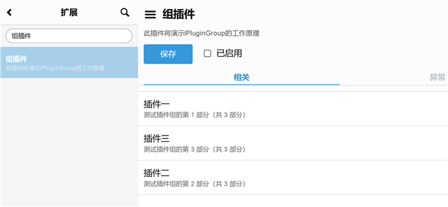 组插件可以使用 IPluginGroup 使您的项目的设置和配置更易于管理。这将允许您组织和创建多个插件,并在管理面板中对它们进行分组。