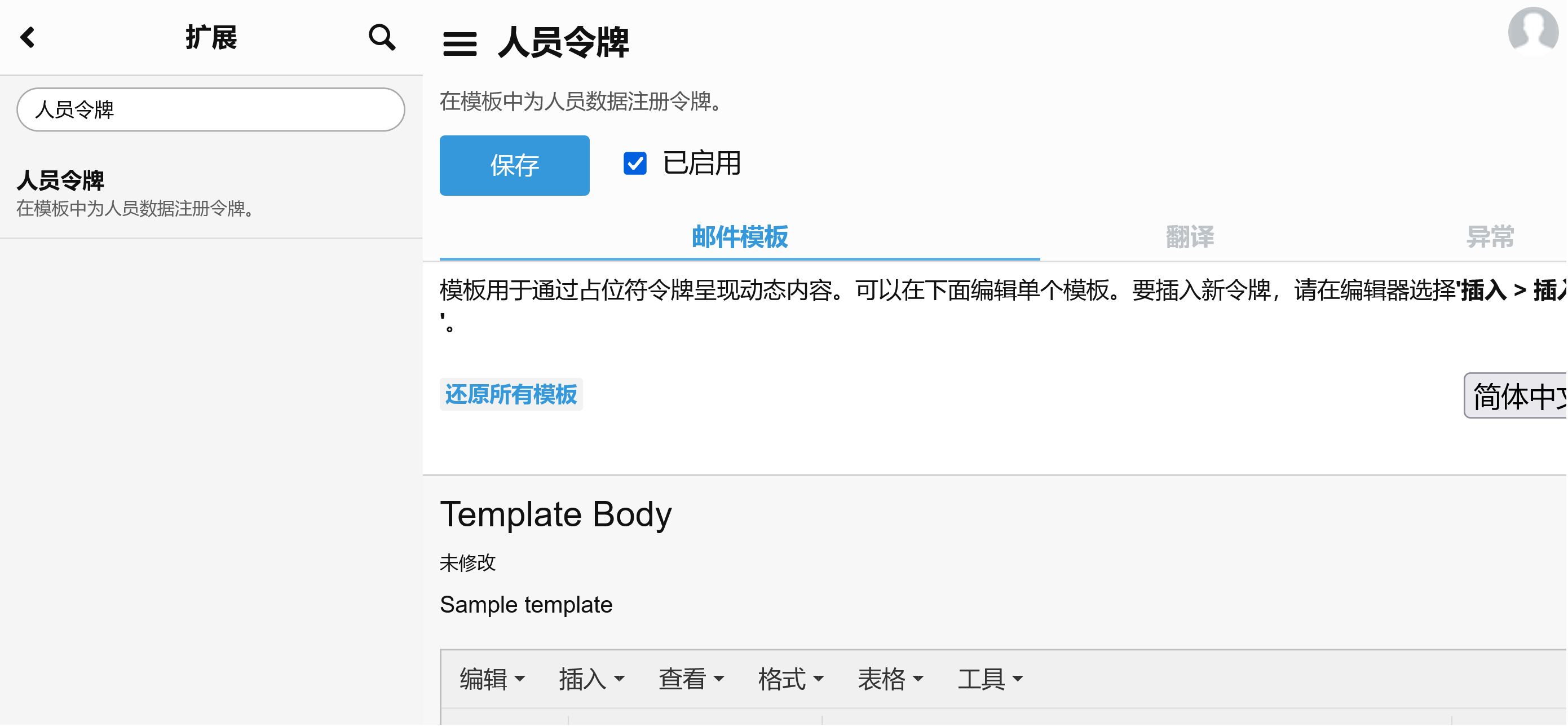 允许插件使用邮件模板