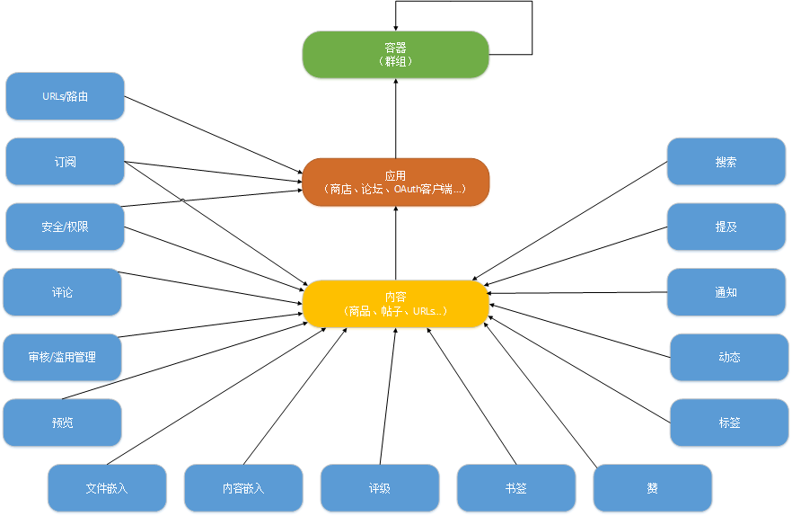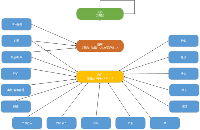 内容存在于单个应用程序中,表示创作的信息,而不是结构化信息。Limyee 电商平台中的大多数互动都是关于内容的。例如:赞,书签,评论,动态,通知,搜索等都发生在内容上。
