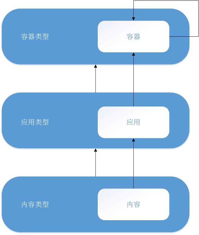 内容模型是一般内容及其包含结构的抽象表示形式。此通用模型用于从平台提供全局服务,以实现一致的交互来简化扩展和集成。内容模型由三种类型的实体组成:容器、应用程序和内容。