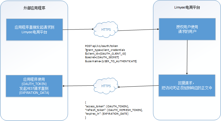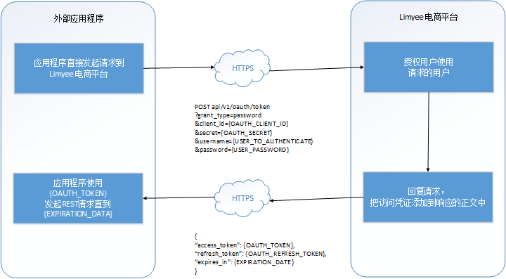 只能与"机密"客户端类型一起使用。用户向客户端应用程序提供其 Limyee 电商平台用户名。然后,客户端应用程序发布到 Limyee 电商平台站点。然后,响应将包含access_token、expires_in和refresh_token或错误。 此授权类型最适合受信任的实用程序。 |