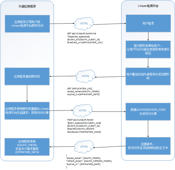 Limyee 电商平台将用户定向到外部应用程序的重定向 URL。下面是此请求的示例处理程序,其中包括使用收到的授权代码获取访问令牌: