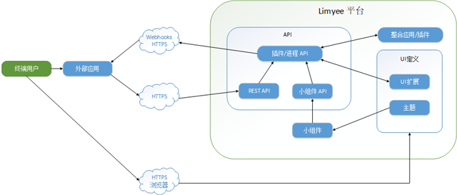 Limyee 电商平台公开了一组插件,这些插件支持 UI 函数的特定可扩展性。这包括编辑器扩展、HTML 标头扩展、自定义 HTTP 回调、新的 URL/路由扩展、自定义实时通信 Socket 和小组件开发扩展。