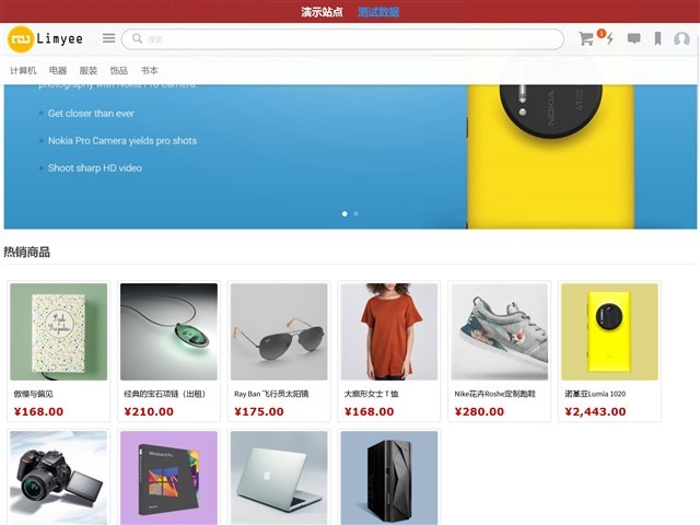 默认主题作为 Limyee 电商平台的默认主题,可支持移动设备的响应式设计。