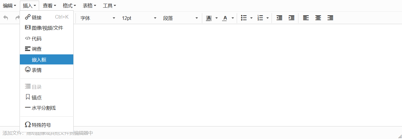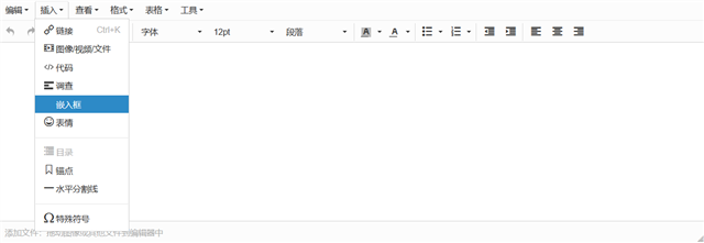 在平台中部署并启用插件后,在创建帖子时,您将看到“插入嵌入框”选项